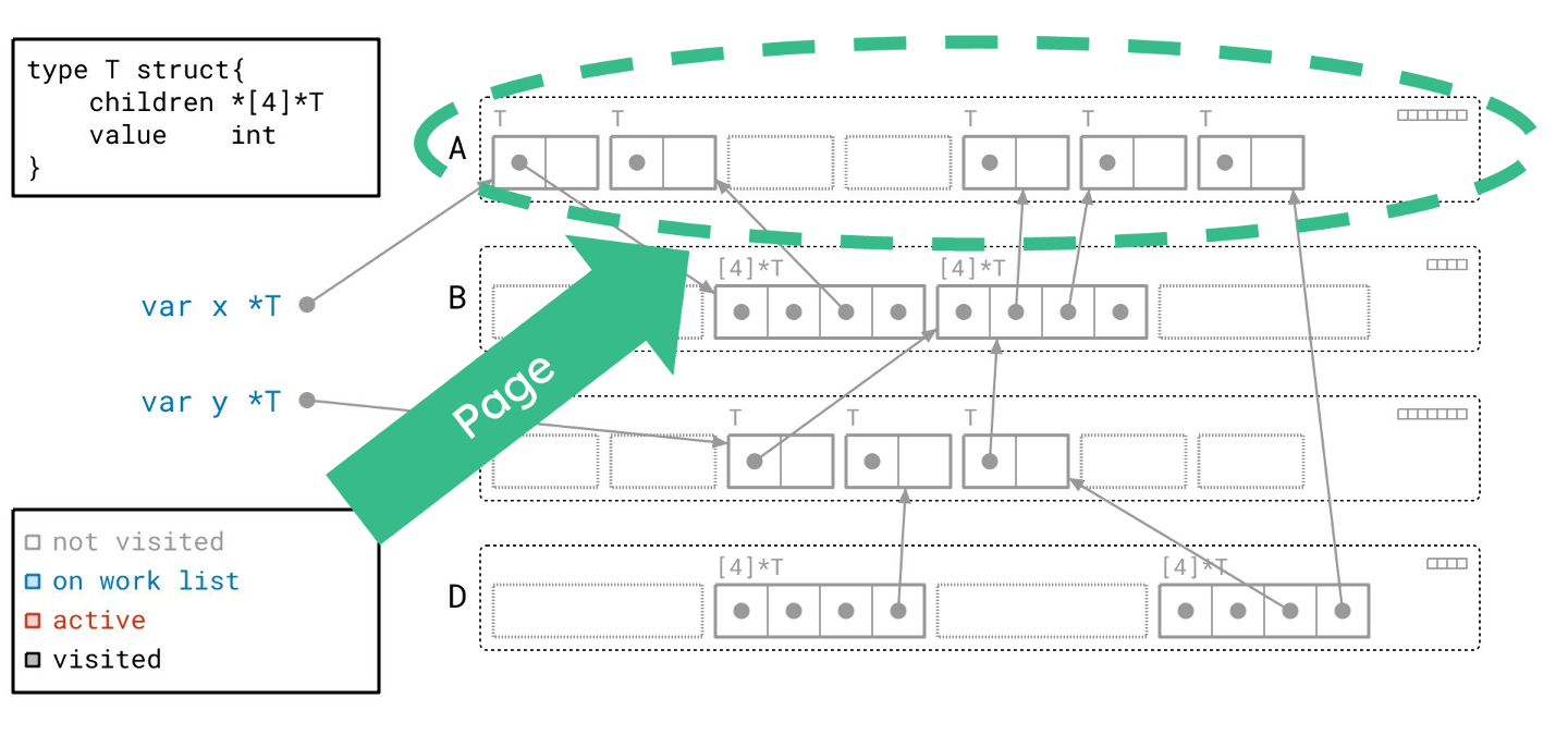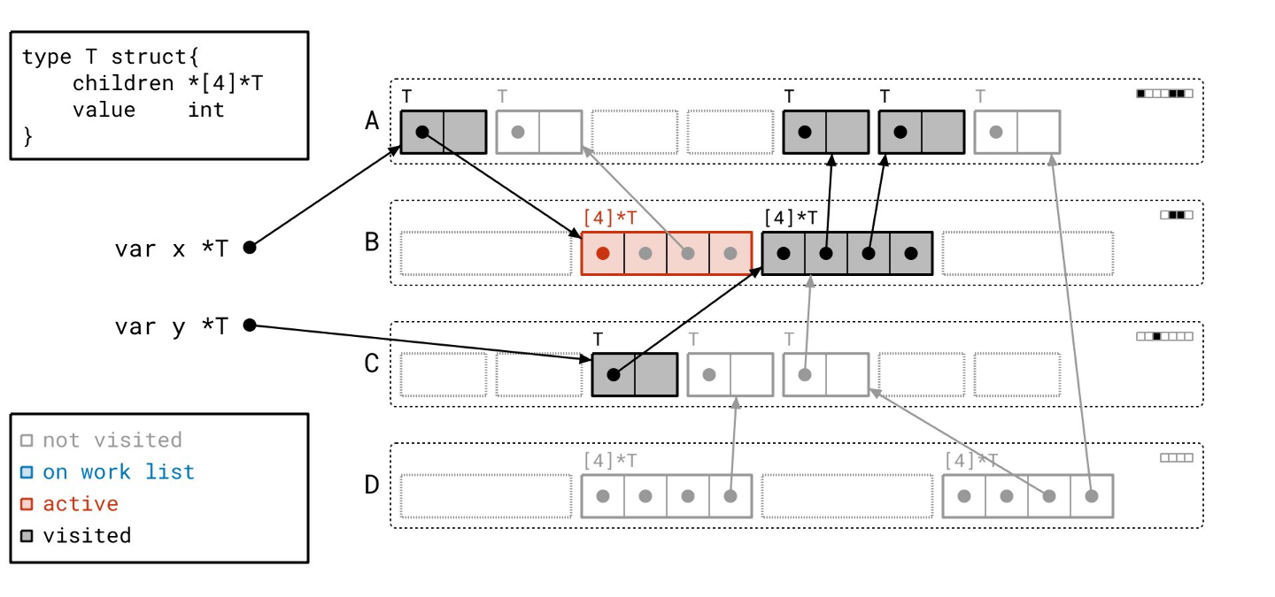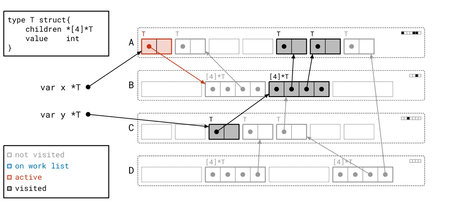 For example, this algorithm is, in practice, executed concurrently with your regular Go code. Walking a graph that’s mutating underneath you brings challenges. We also parallelize this algorithm, which is a detail that’ll come up again later.